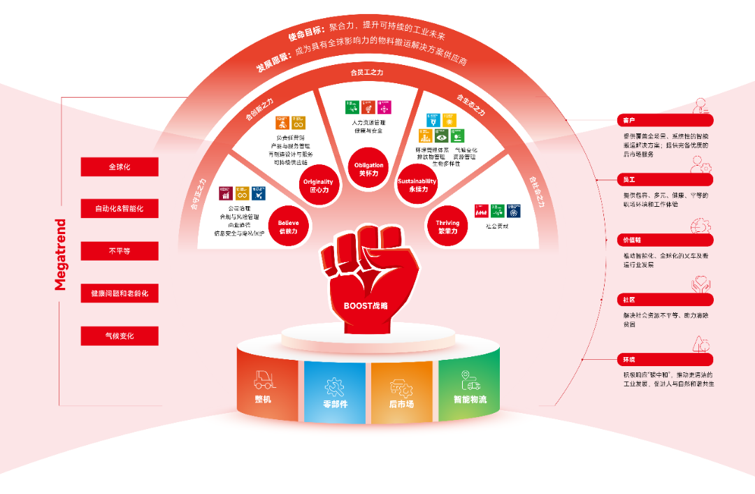 作為中國工業(yè)車輛行業(yè)的領軍企業(yè),安徽合力秉持“合力提升未來”的使命,系統(tǒng)構建具有行業(yè)特色的ESG戰(zhàn)略管理與實踐體系,扎實推進可持續(xù)發(fā)展“BOOST”戰(zhàn)略,全面深化ESG管理,持續(xù)提升ESG表現,共繪可持續(xù)發(fā)展的工業(yè)藍圖,努力為實現經濟繁榮、環(huán)境可持續(xù)和社會公平積極貢獻合力力量。